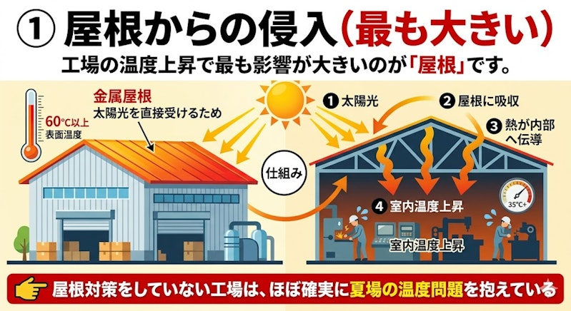 👉 屋根対策をしていない工場は、ほぼ確実に夏場の温度問題を抱えている