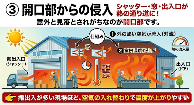■工場の温度が上がる主な侵入経路